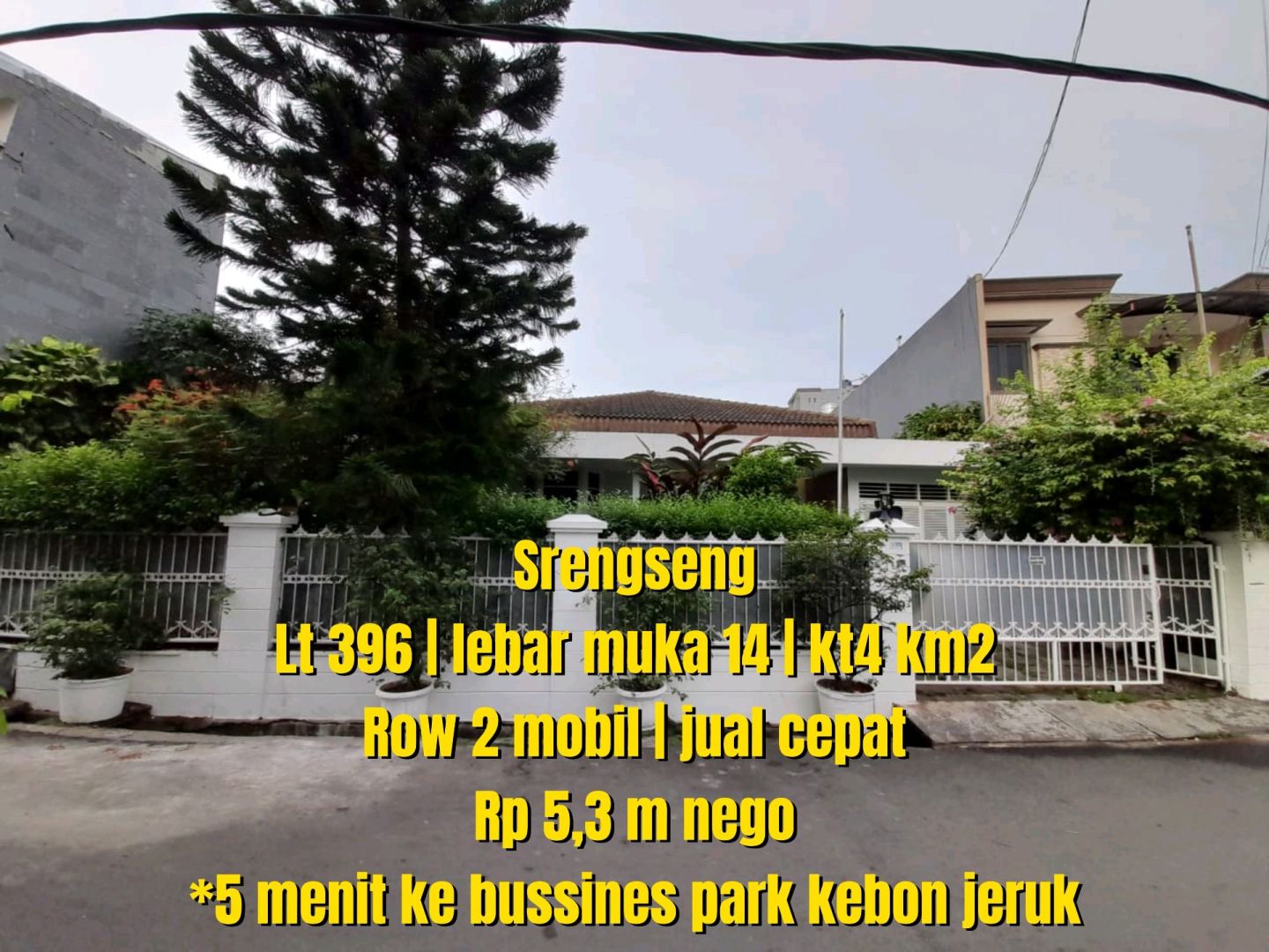 Rumah prestisius siap huni di Srengseng, Jakarta Barat. Hunian elit dengan 4 kamar tidur dan 2 kamar mandi, LT 396m², LB 250m². Harga eksklusif: 5,3 Miliar. Fasilitas sekitar lengkap.