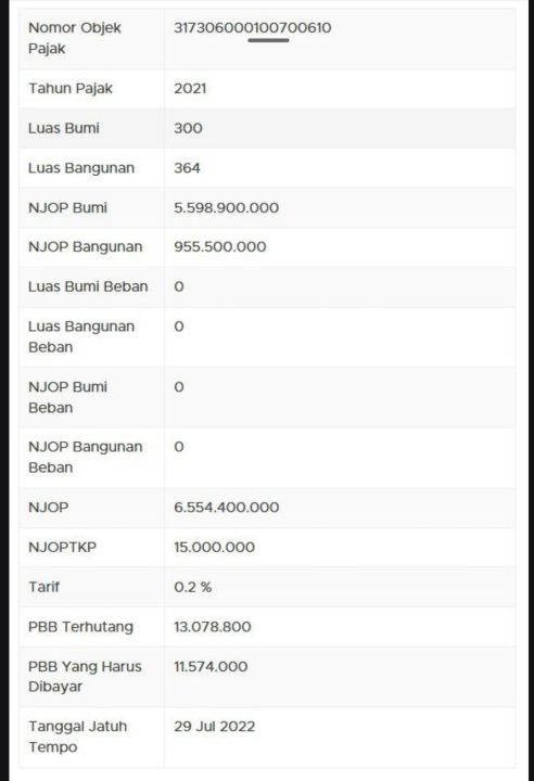 -Njop Rp 6,5 M an