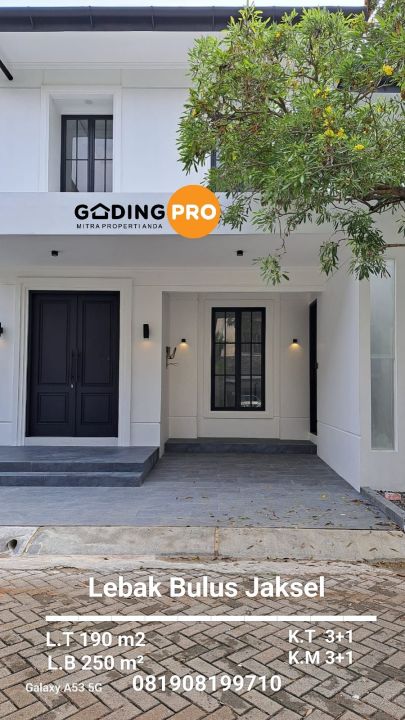 Tempat tinggal cocok di kawasan strategis Lebak Bulus, Jakarta Selatan. rumah 2 lantai ini mempunyai fasilitas 3 kamar tidur dan 3 kamar mandi dengan total 250 m2.