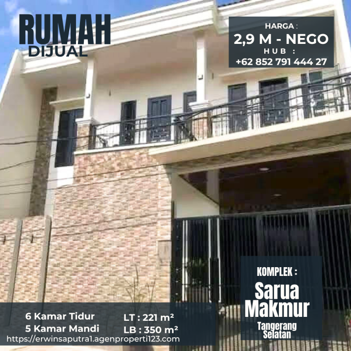 Penawaran terbatas rumah luxury di Ciputat, Tangerang Selatan. Desain elegan dengan LT/LB: 221/350m², 5 KT & 6 KM. Harga spesial: 2,9 Miliar. Kawasan elite.