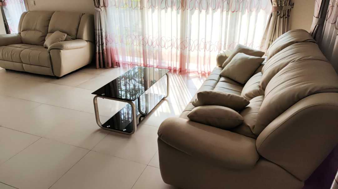 Sofa + Meja : 1 set ( sofa 3 dan 2 tempat duduk + 2 unit meja kaca )