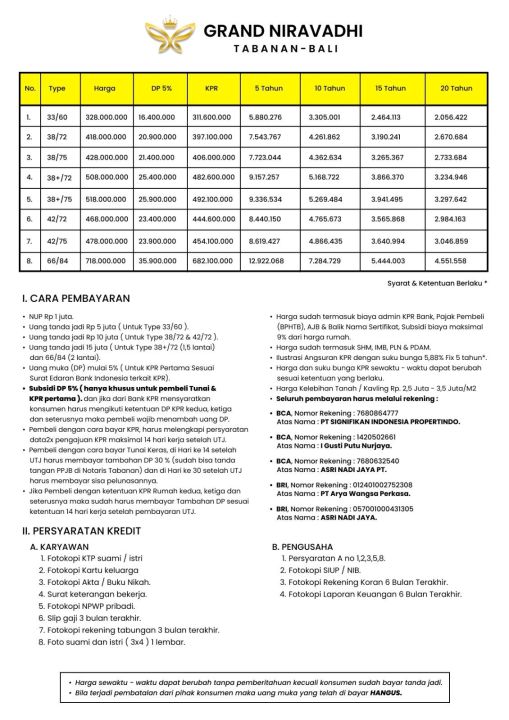 2. Terdapat biaya administrasi, appraisal, asuransi jiwa, asuransi kebakaran, notaris dan biaya lain dalam pengajuan KPR. Rincian biaya akan didapatkan setelah keputusan kredit diterima oleh calon debitur.