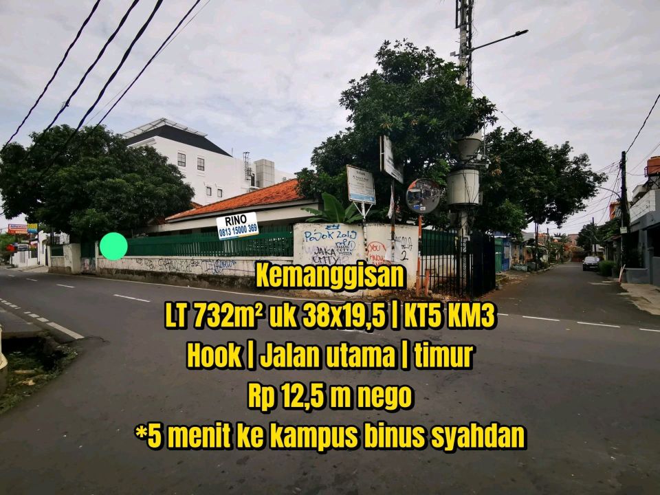 Rumah Lama 1,5 Lantai Hitung Tanah Lebar 38 Meter Strategis Tepi Jalan Utama Dekat Kampus Binus Syahdan Kemanggisan Jakarta Barat