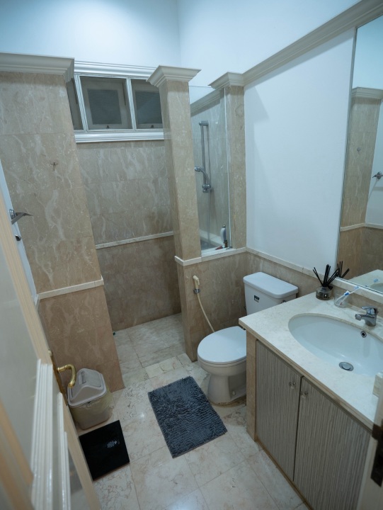 (Kolam renang, outdoor jacuzzi, pool veranda, taman, service area dgn 2 kamar pembantu, kamar mandi, 1 kamar supir, kamar mandi, dapur belakang, dan area cuci & jemur baju)