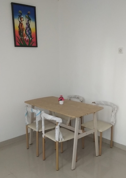 Sudah ada sofa dan meja tamu, meja hiasan, meja+kursi makan