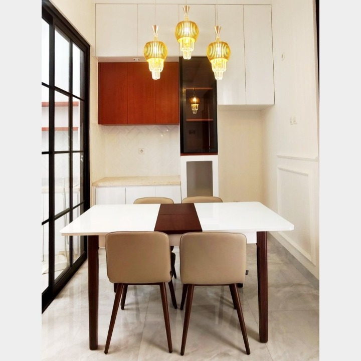 yakni : Kitchenset, - Sofa, - Interior lt 1, Ac 4 unit baru, meja makan + kursi, lampu kristal gantung, kanopi diarea laundry/ tempat jemur