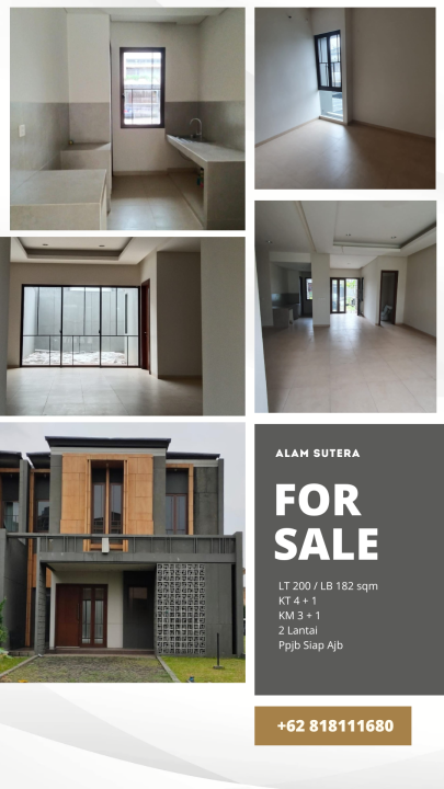 Penawaran istimewa memiliki rumah elit di Alam Sutera, Tangerang. Luas tanah 200m², bangunan 182m², 4 KT & 3 KM. Harga terbaik di kelasnya: 4,65 Miliar. Dekat pusat kota dan fasilitas premium.