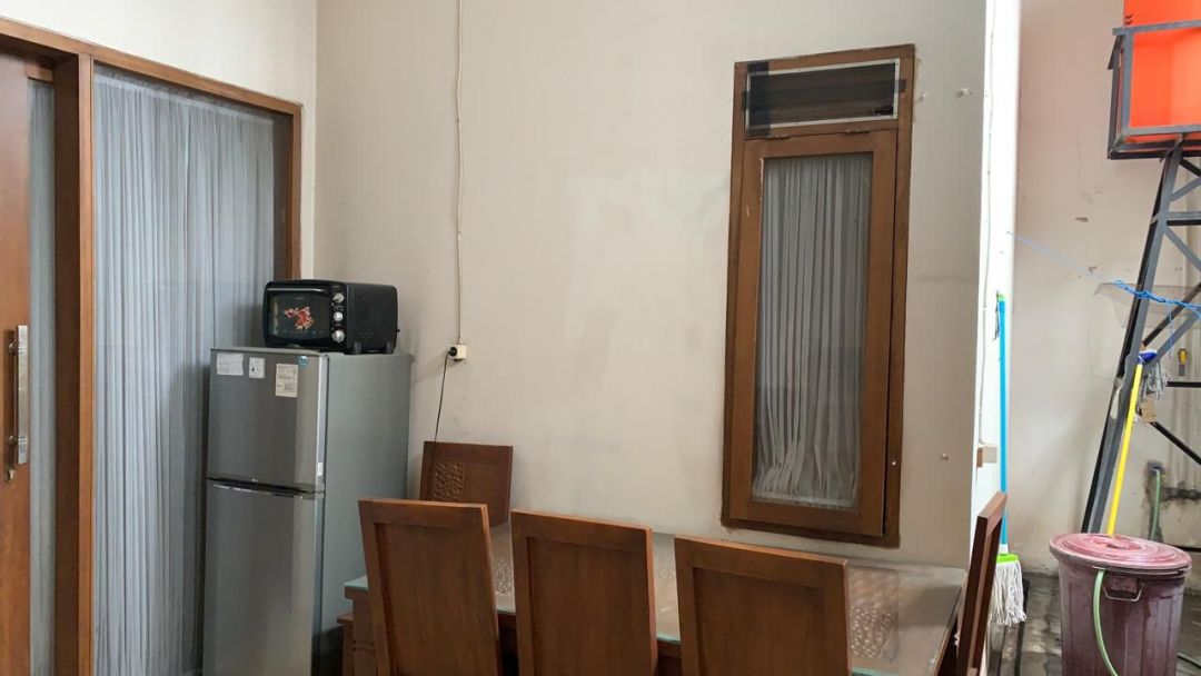 - di jual berserta isi, 2 kasur, satu set kursi meja tamu jati , satu set meja makan jati, tv, kulkas, lemari, perabot dapur, siao tinggal