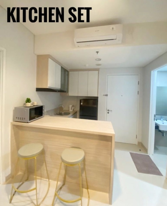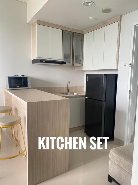 - Kitchen set lengkap include : Cooker Hood, kompor listrik , Microwave, strika, Teko Pemanas air,