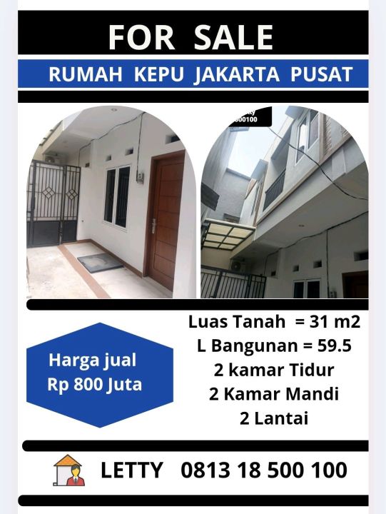 Dijual rumah di Kemayoran, Jakarta Pusat. Hunian nyaman dengan 2 kamar tidur dan 2 kamar mandi. LT 31m², LB 59m². Harga kompetitif 800 Juta. Lokasi strategis.
