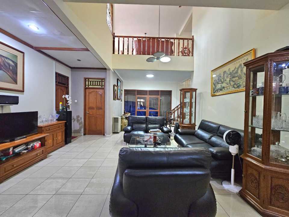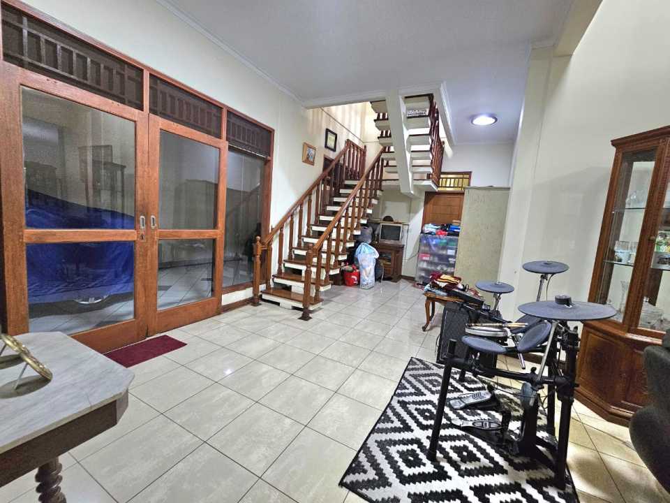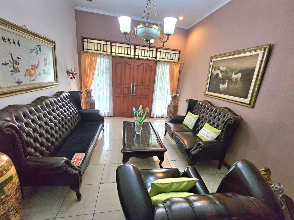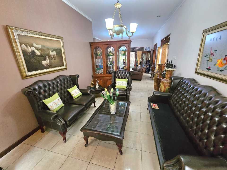 1 ruang tamu + ruang keluarga + kolam ikan