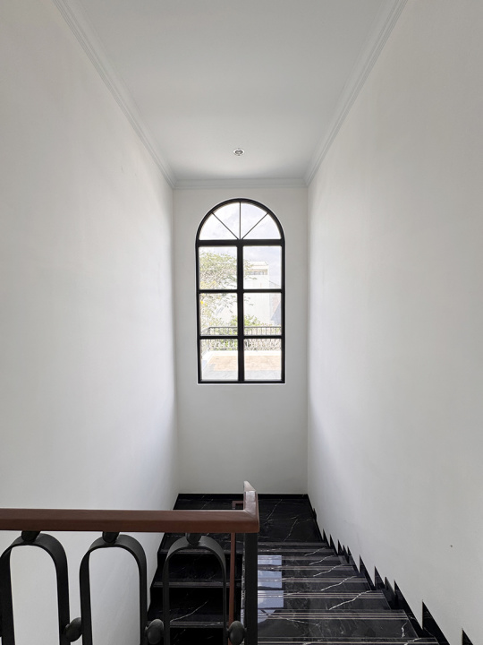 - Kusen jendela UPVC warna hitam.