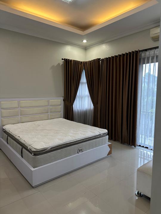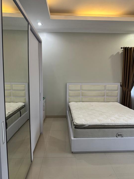 Sofa bed 2 unit, TV 2 unit, ranjang 3 unit, AC 5 unit, Meja makan, dapur full furnish, dispenser, kulkas.