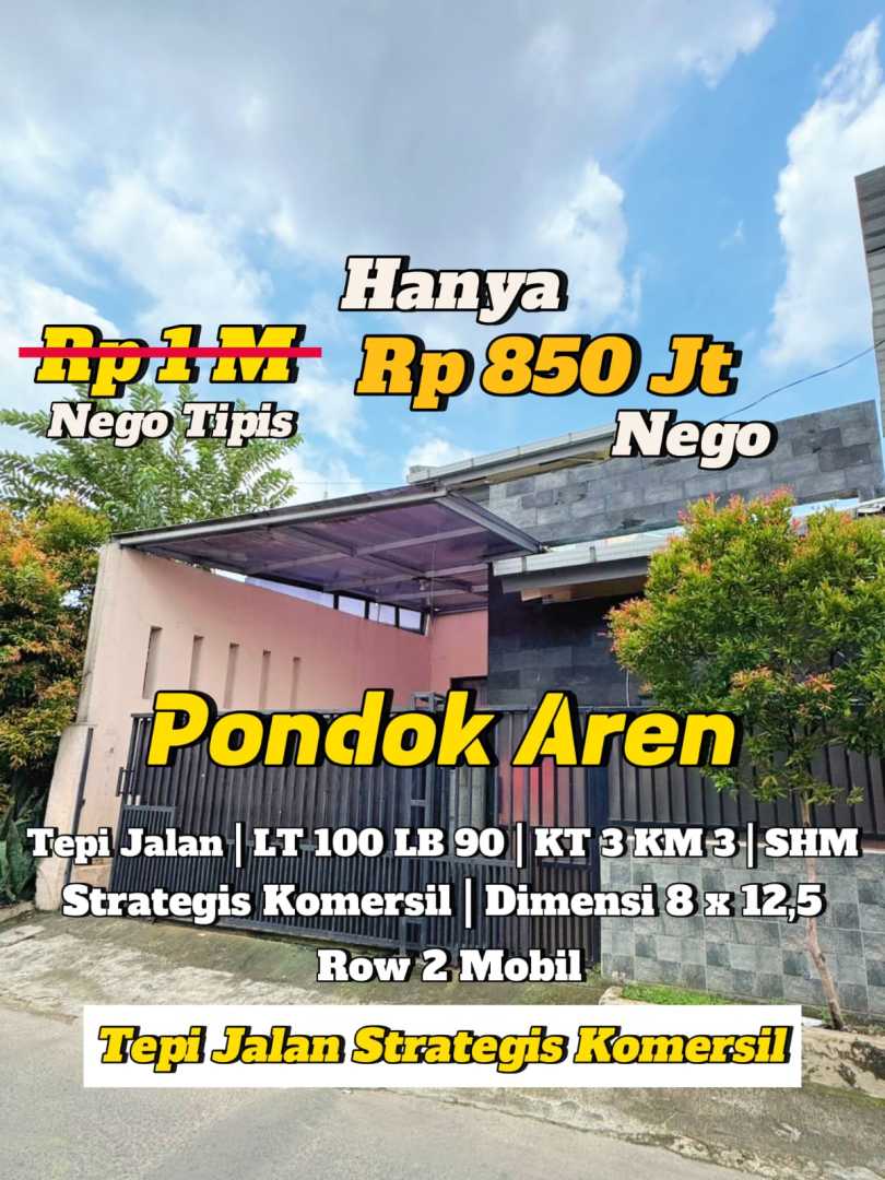 Promo terbatas rumah keluarga di Pondok Aren, Tangerang Selatan. Luas tanah 100m² dengan bangunan 90m², terdiri dari 3 KT & 3 KM. Harga terbaik di kelasnya: 850 Juta. Lingkungan asri dan aman.