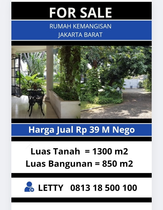 Tersedia rumah eksklusif di kawasan elit Kemanggisan, Jakarta Barat. Dengan desain modern, LT 1300m², LB 850m², terdiri dari 3 KT & 2 KM. Harga premium: 39 Miliar. Lingkungan prestisius.