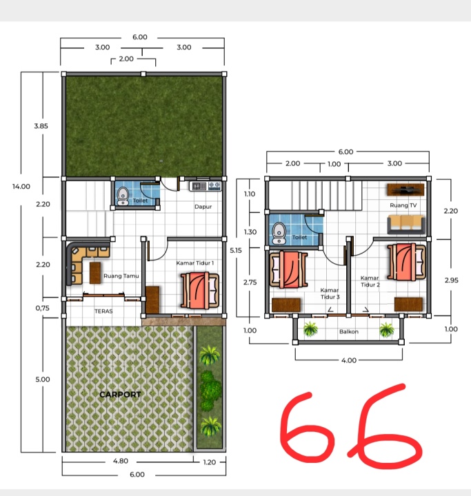 - Kamar Tidur: 3