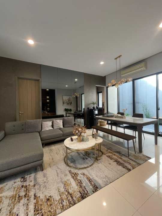 Sudah dilengkapi dengan Interior modern scandinavian, spec HPL Lamitac/ Aica with branded furniture Vivere / Cellini, Canopy depan belakang tempered glass, Halaman belakang & dak sudah dikeramik.