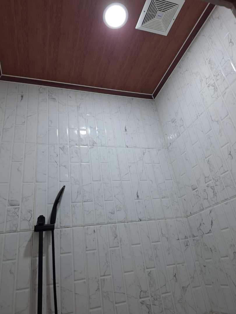 Lantai granite, Plafon PVC anti rayap, Atap genteng, Rangka baja ringan, Tinggi plafon 375CM