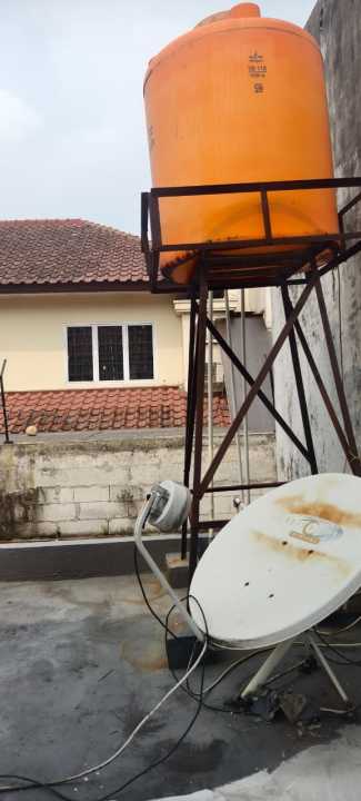 Atas sudah di dak (cor), dan ada balkon juga, ada water toren.