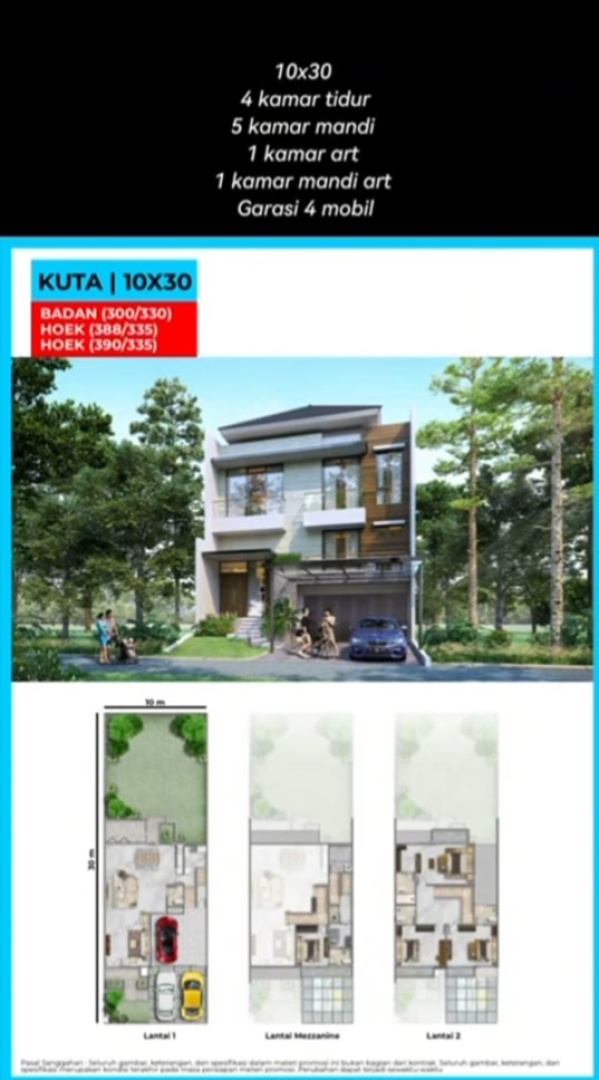 luas tanah 300 m2 (10 x 30 )
