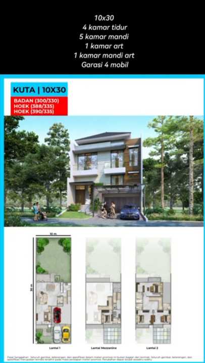 luas tanah 300 m2 (10 x 30 )