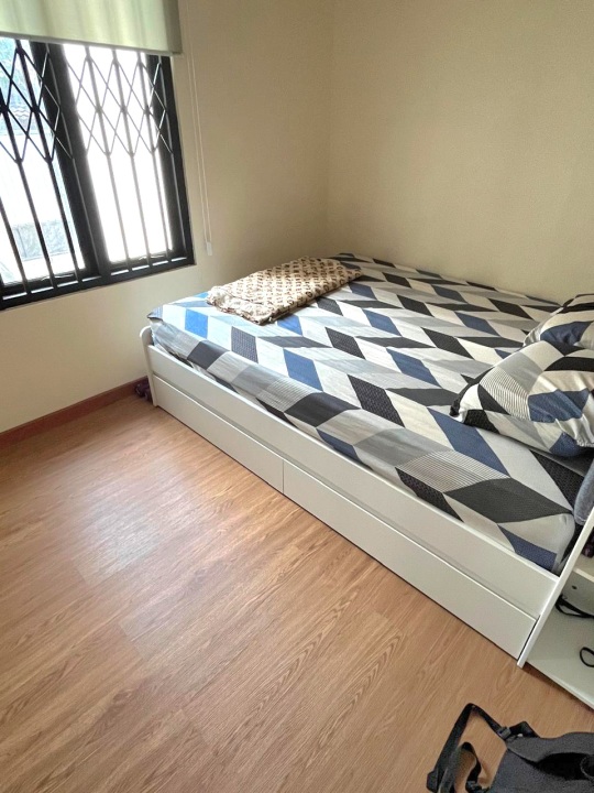 2 kamar tidur (1 km tidur depan pakai AC + Lemari pakaian ).