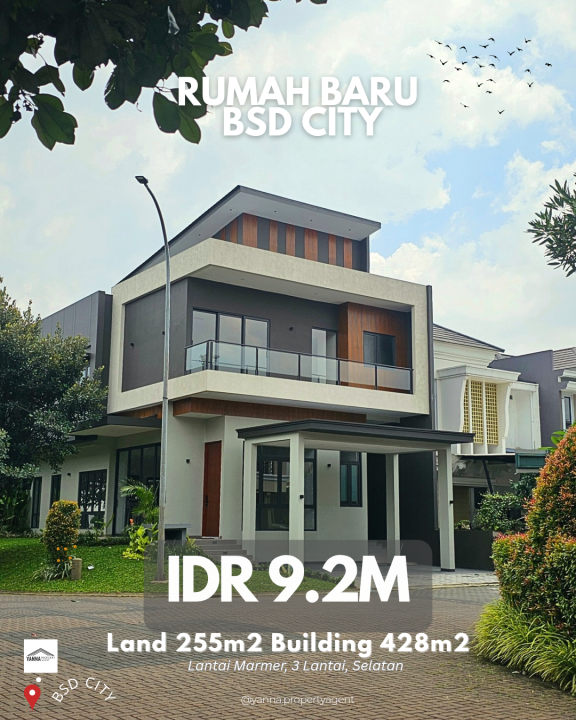 Dijual rumah eksklusif di kawasan elit BSD Green Wich, Tangerang. Dengan desain modern, LT 255m², LB 428m², terdiri dari 5 KT & 4 KM. Harga premium: 9,2 Miliar. Lingkungan prestisius.