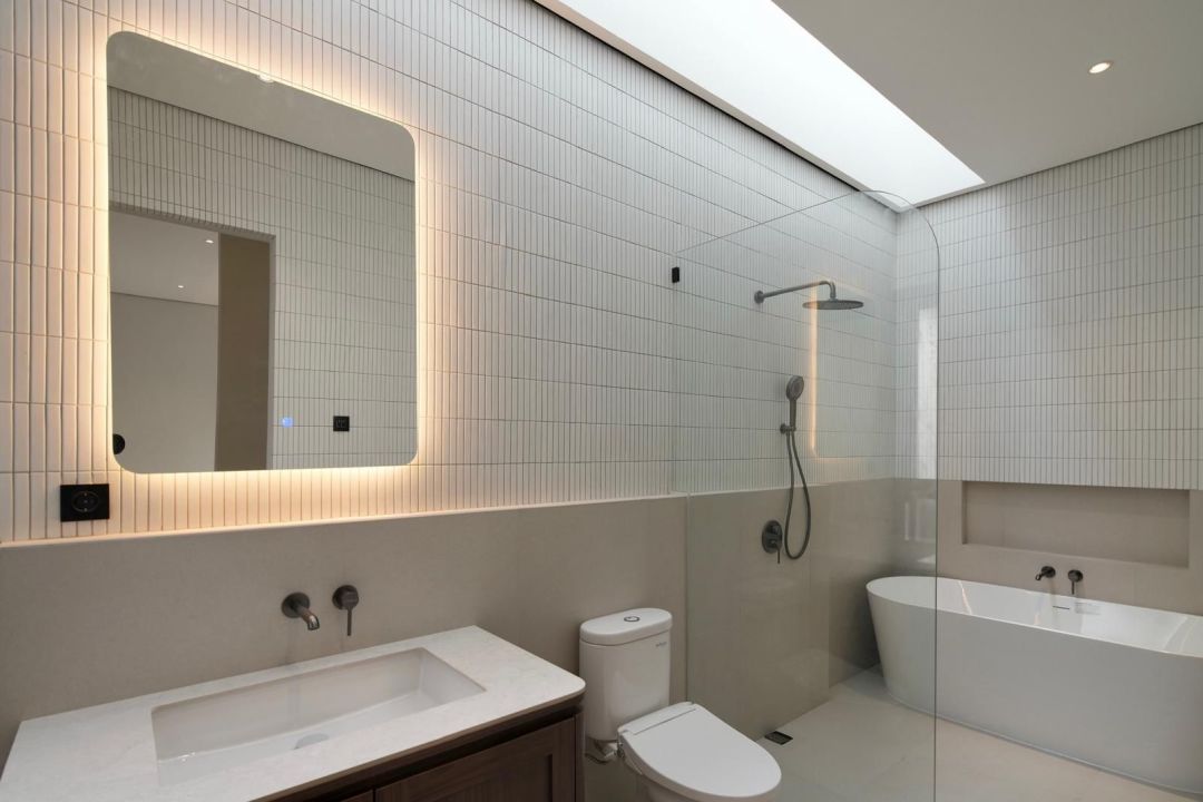 Master BR: walk-in closet, ensuite bathroom (freestanding bath, skylight)