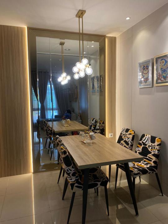 Lampu gantung di area meja makan, Lemari SEMUA DITINGGAL.