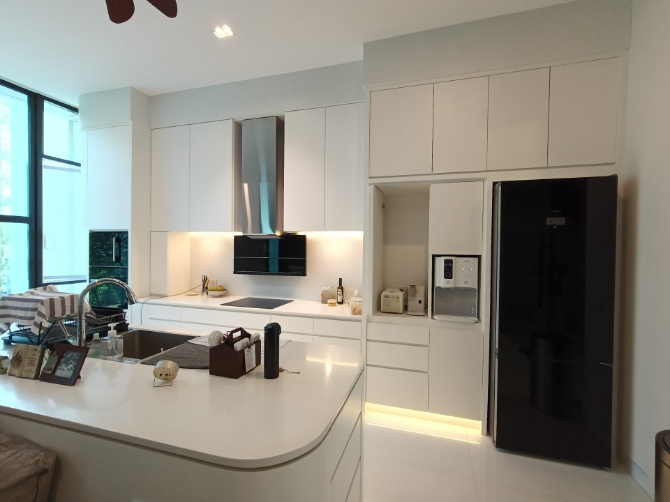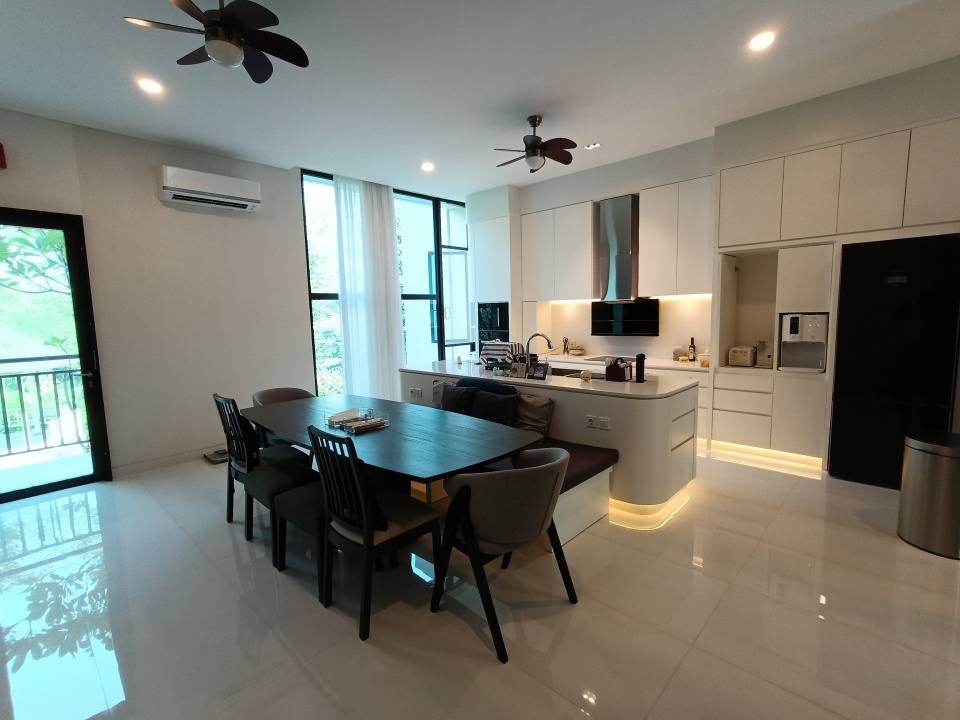 ( Kitchen set + kulkas Bosch , kompor induksi listrik Bosch , cowoy meja makan 1 set. Dapur kotor . Tv 50" )