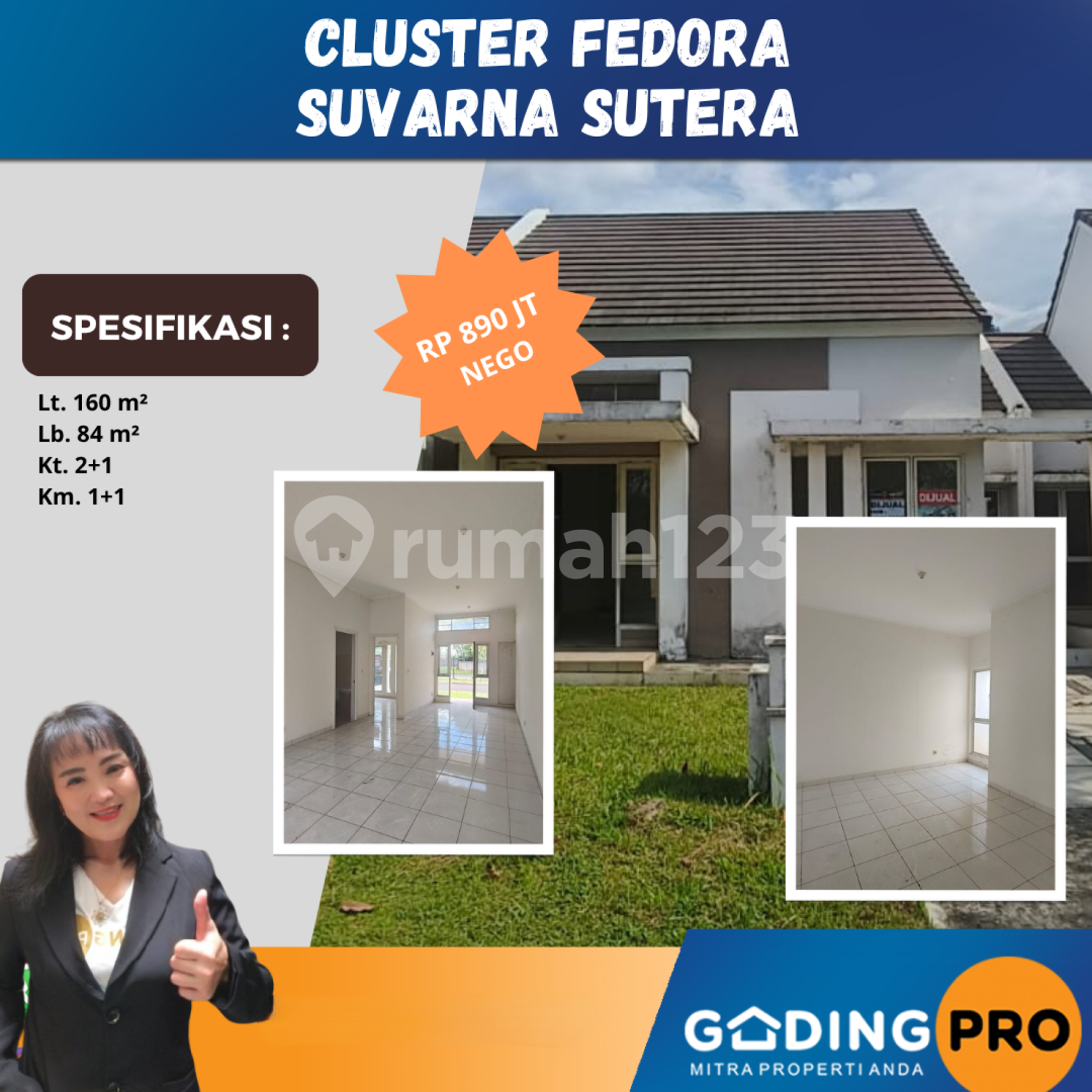 Promo terbatas rumah idaman di Suvarna Sutera, Tangerang. Luas tanah 160m² dengan bangunan 84m², terdiri dari 2 KT & 1 KM. Harga terbaik di kelasnya: 890 Juta. Lingkungan nyaman.