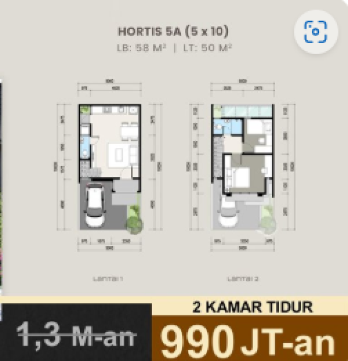 Luas Tanah: 50m2