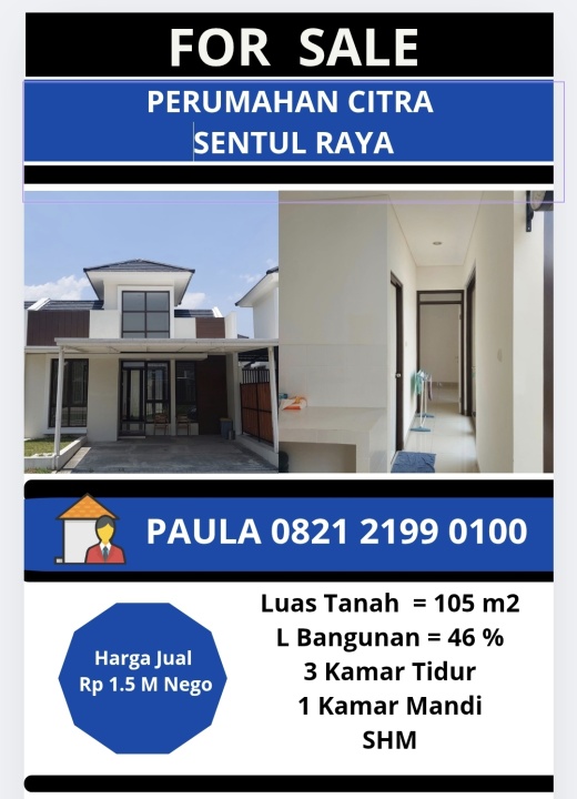 Penawaran menarik rumah di Sentul, Bogor. Memiliki 3 kamar tidur, 1 kamar mandi, luas tanah 105m², luas bangunan 46m². Harga spesial: 1,5 Miliar. Lingkungan nyaman.