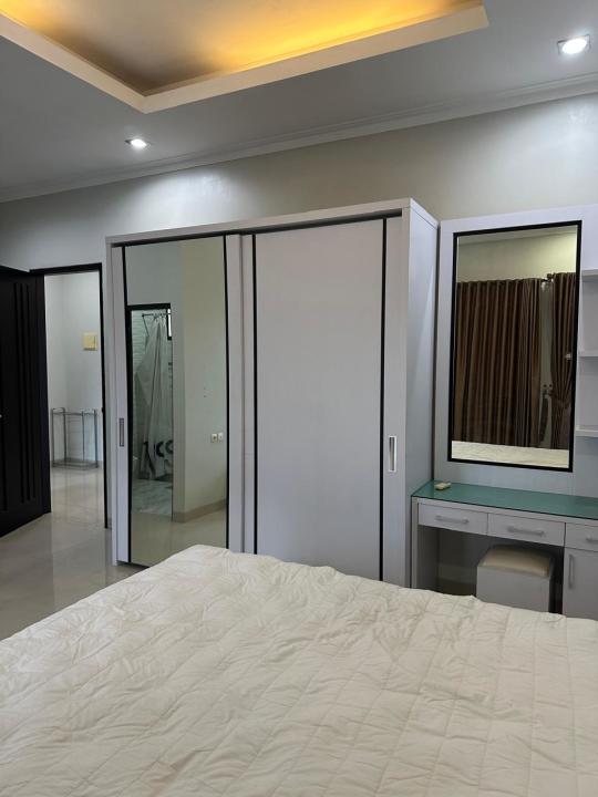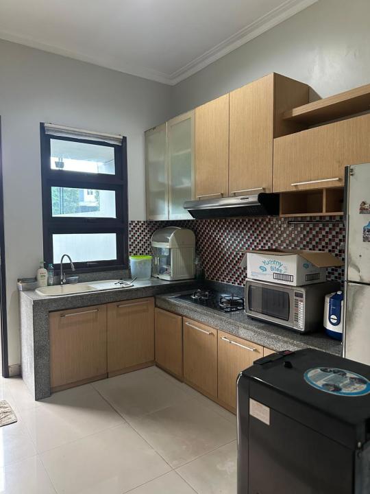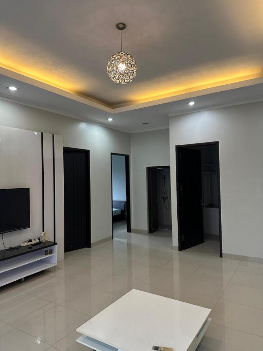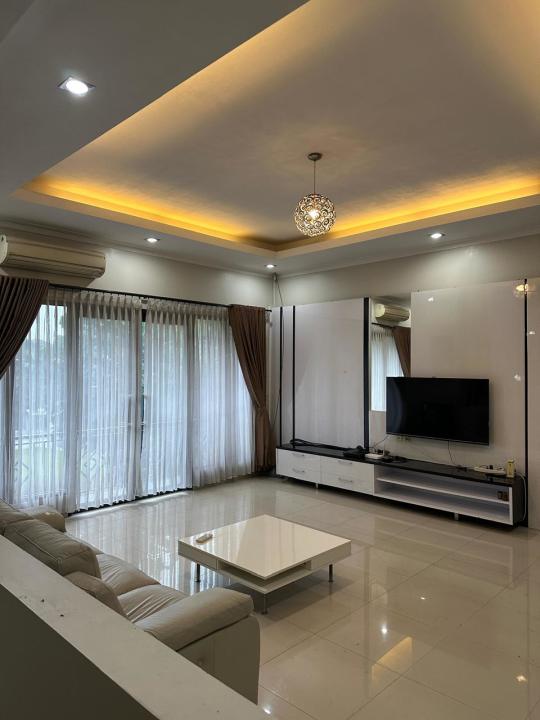 Sofa bed 2 unit, TV 2 unit, ranjang 3 unit, AC 5 unit, Meja makan, dapur full furnish, dispenser, kulkas.