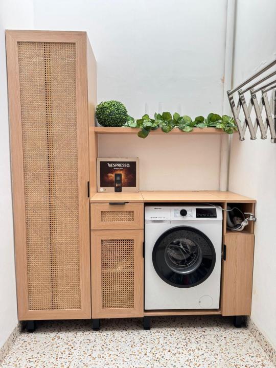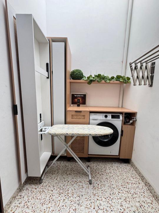 Interior : tempat tidur,kitchen set,meja makan sofa,laundry room