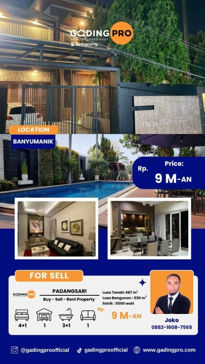 Rumah prestisius baru renovasi di Banyumanik, Semarang. Hunian elit dengan 5 kamar tidur dan 4 kamar mandi, LT 687m², LB 530m². Harga eksklusif: 9 Miliar. Fasilitas lengkap.