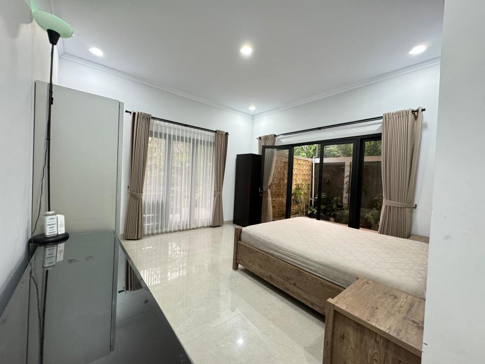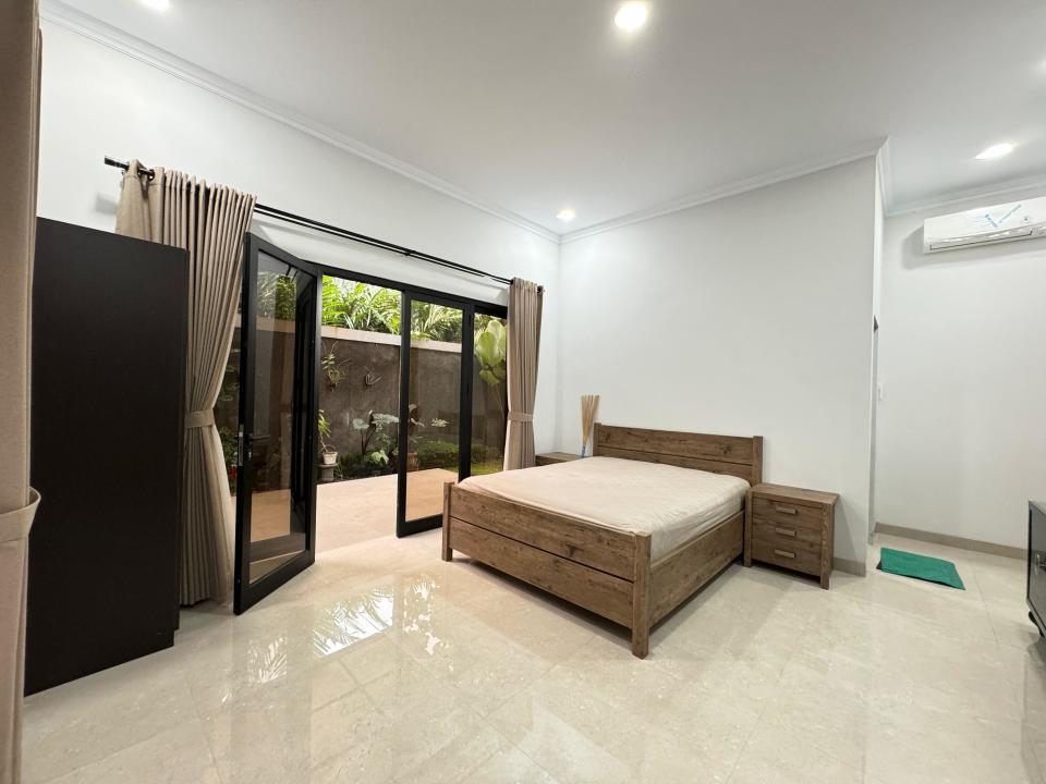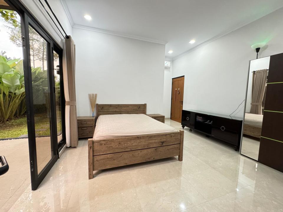 Furnished: sofa, coffee table, meja makan set, tempat tidur, lemari, kitchen set with island, AC, kulkas, gordyn.