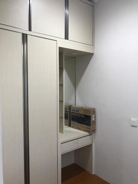 Semi furnished: kitchen set, gordyn, AC