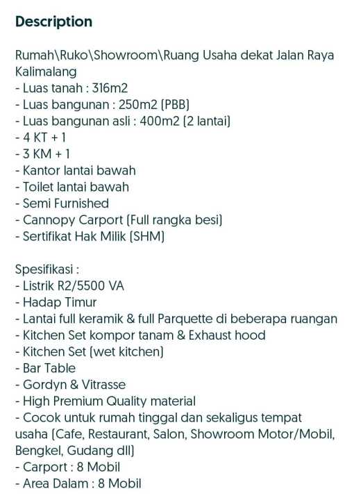 DIJUAL RUMAH/RUKO/SHOWROOM/RUANG USAHA STRATEGIS DEKAT JALAN RAYA KALIMALANG