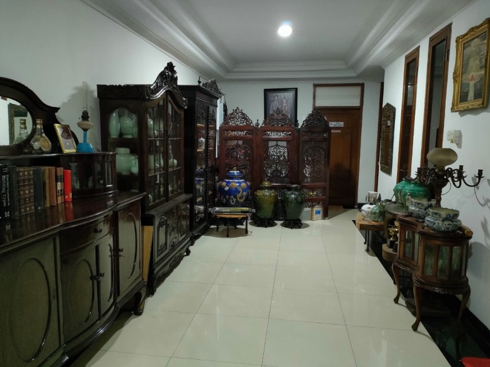 Jendela kmr dan ruang tamu tinggi dan dari kaca patri/timah.