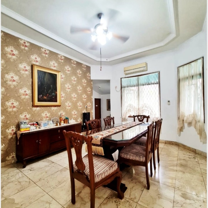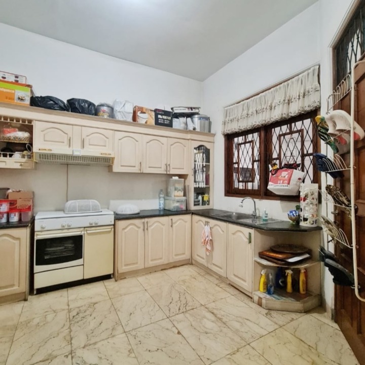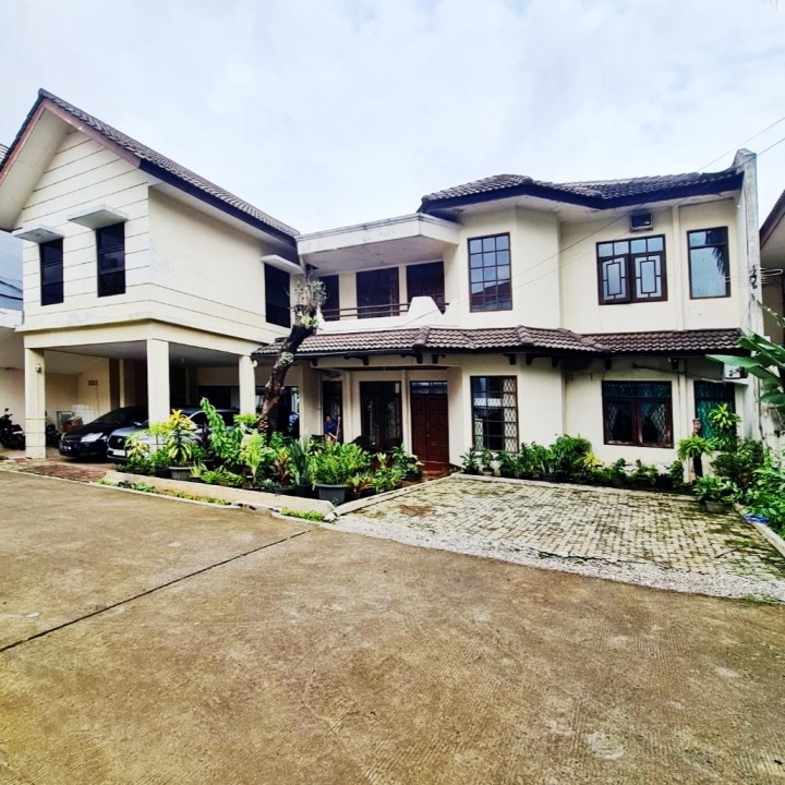 Rumah bergaya Modern ini berada di dalam komplek yang hanya ada empat rumah. Selain bangunan utama, Rumah dua lantai ini juga memiliki Paviliun 2 lantai yang dibangun terpisah dari rumah induk.