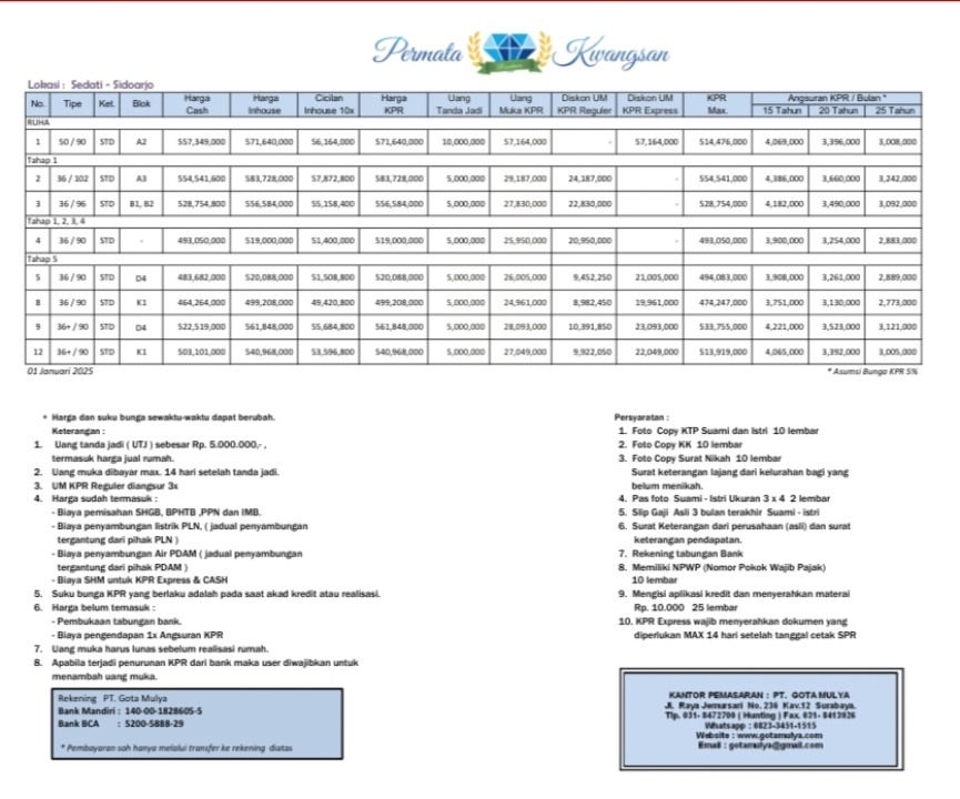 Rumah Free Dp 2-3 Kamar Tidur Luas 90M2 Permata Kwangsan Sidoarjo