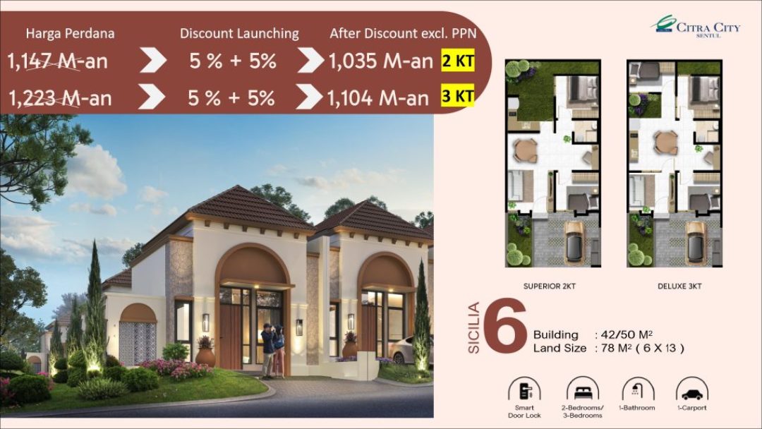 Cluster SICILIA CITRA CITY Sentul menghadirkan keindahan hunian denan perpaduan harmonis antara kemewahan dan kesejukan alam. Dengan arsitektur bergaya Mediterranean classic, nuansa hangat, serta lanskap asri yang menenangkan.