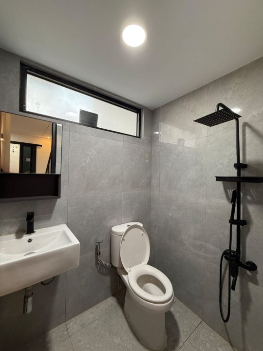 - Lantai dan dinding kamar mandi : Homogenous tile 60x60