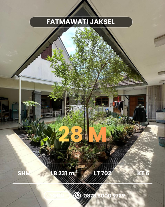 Dijual rumah mewah di kawasan elit Fatmawati, Jakarta Selatan. Dengan desain elegan, LT 702m², LB 231m², terdiri dari 6 KT & 6 KM. Harga premium: 28 Miliar. Akses mudah.