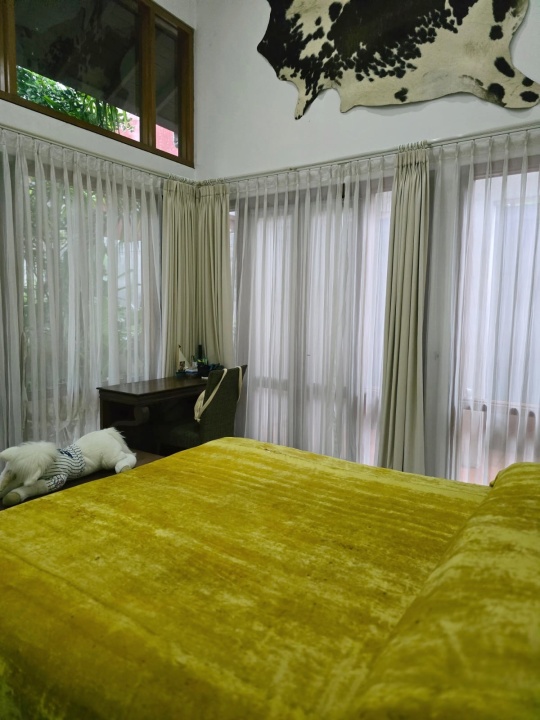 Hunian dengan konsep semi outdoor, taman luas, rapi, dan terawat dengan baik.