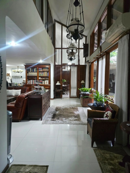 Rumah dalam kondisi siap huni, pencahayaan dan sirkulasi udara baik, dengan area taman yang masih sangat lega.
