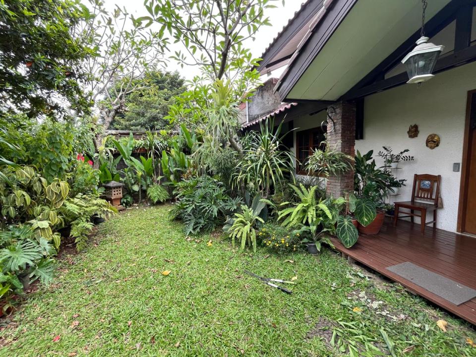 Banyak tanaman hias dan material rumah dari kayu