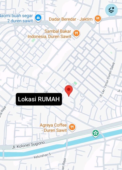 Berlokasi strategis berkisar 8 menit dari Agreya Coffee Duren Sawit Jln. Kol Sugiono, Dijual Rumah Lingkungan Tenang Nyaman didalam Kompek, Row jalan lebar 2.5mobil, (one gate syatem)berlokasi di Kec.Duren Sawit Jakarta Timur