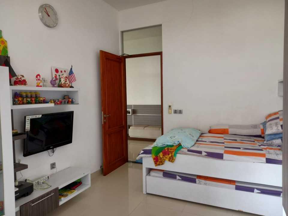 4. 4 kamar tidur, 1 kamar pembantu, 1 dapur kering, 1 ruang makan, 1 ruang jemuran, 1 gudang , 2 ruang keluarga, taman depan samping dan belakang..